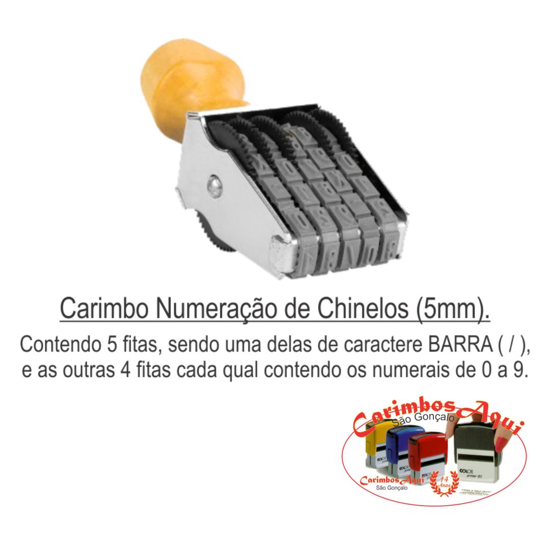 Carimbo para Numeração de Chinelos (5mm), contendo 5 fitas sendo uma delas barra ( / ) e as outras 4 fitas, cada qual contendo os numerais de 0 a 9.