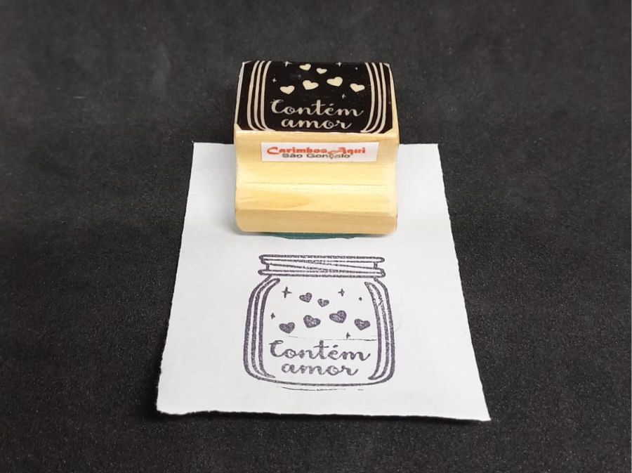 Carimbo Madeira Artesanal medindo 3x2,5cm